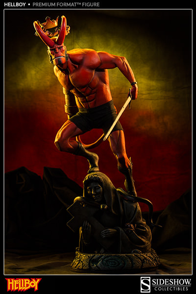 Soška Hellboye podle komiksu Mike Mignoly umožňuje zobrazit dva vyměnitelné portéty. Jako Hellboye a jako Anung Un Ramu s rohy a korunou. |
